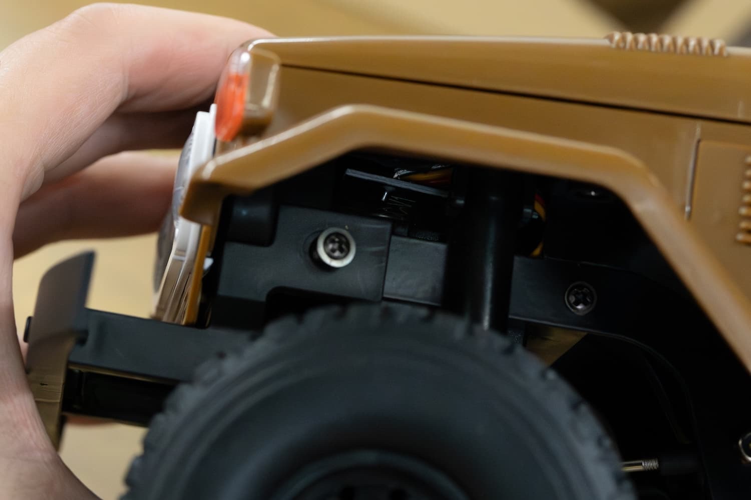 組み立てたメタルフロントバンパーを、バンパーの根元と車体の位置を合わせ、ネジでしっかりと固定すれば完成です。