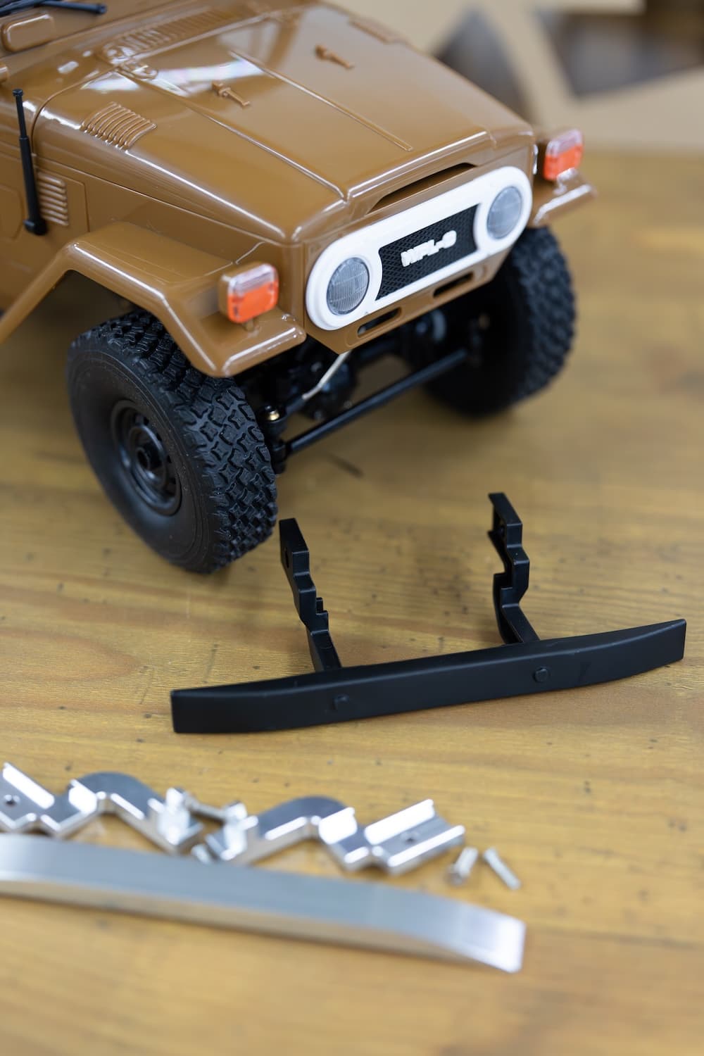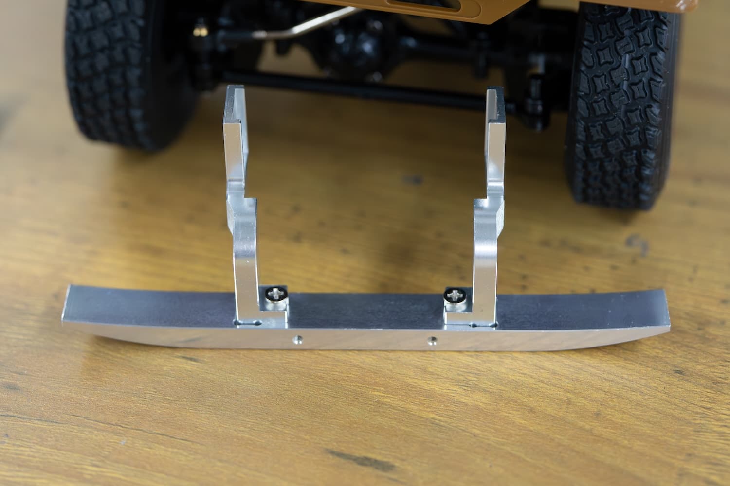 メタルフロントバンパーをネジで留めて組み立てます。作業はこれだけなので、複雑な工程はありません。